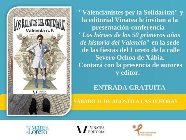 20 de agosto de 2019 - 16:29Presentación del libro del centenario del Valencia CF Foto Anterior2 de 3Foto SiguienteVer el artículo original: Programa fiestas Loreto: Sábado 31 de agosto Relatos del centenario Valencianistes- Festes Loreto Baret dels Bous