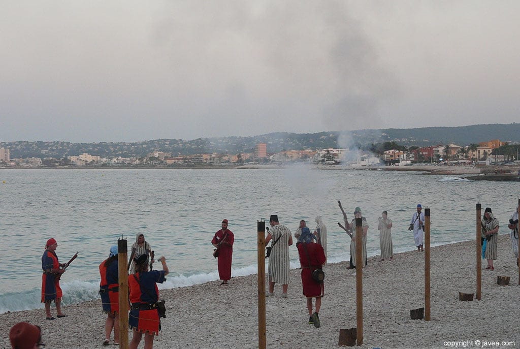 21:00 horas: Batalla con arcabucería entre el Bando Moro y el Bando Cristiano en la Playa de la Grava.