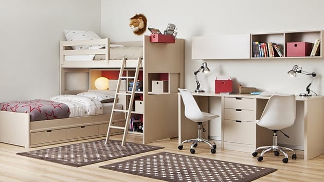 Colores vivos, elegancia y mucha diversión son varias de las características de estas habitaciones que harán las delicias de los más pequeños. Además, también beneficiarán a los adultos, ya que sus espacios para organización y almacenaje ayudarán a la limpieza de los dormitorios.