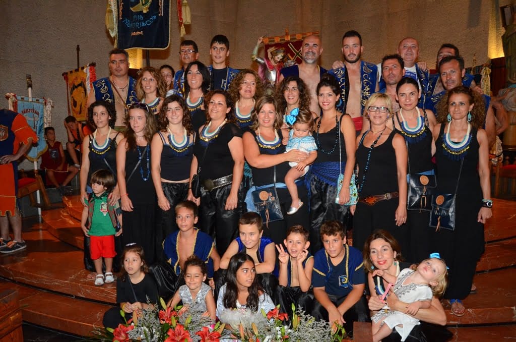 Componentes de la Filà Almorarisco tras hacer la ofrenda floral.