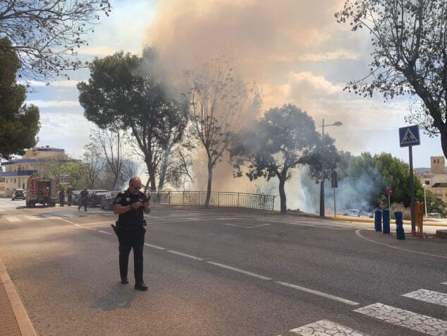 A las 11:30 horas de este jueves se declaraba un incendio en una parcela ubicada en el centro histórico de Xàbia. La rápida intervención de Policía Local, Bomberos del Consorcio Provincial de Alicante, Protección Civil ha evitado que las llamas aumentaran y afectara a vehículos estacionados y a las viviendas próximas, aunque finalmente dos vehículos han sido afectados parcialmente.