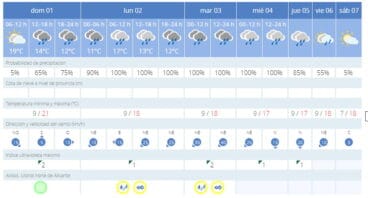 Alerta amarilla en la Marina Alta y un «anómalo episodio» en la segunda mitad del puente de diciembre 08 de diciembre de 2023