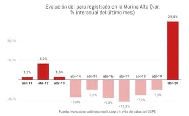 El mes de abril finaliza con un aumento de 1.385 personas desempleadas en la Marina Alta20 de mayo de 2020