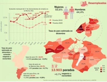 El 2021 se inicia con un 30% más de parados y un 30% menos de contratos en la Marina Alta15 de febrero de 2021