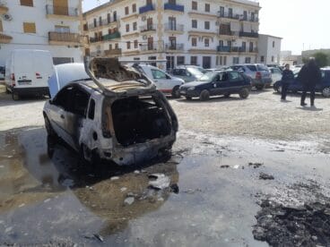 El incendio de un vehículo originó un pequeño fuego en un campo de la zona de Les Valls09 de marzo de 2016