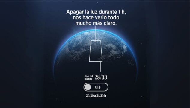 Portal de la Marina se suma un año más a la hora del planeta apagando las luces de su fachada en apoyo a la lucha contra el cambio climático 26 de marzo de 2026