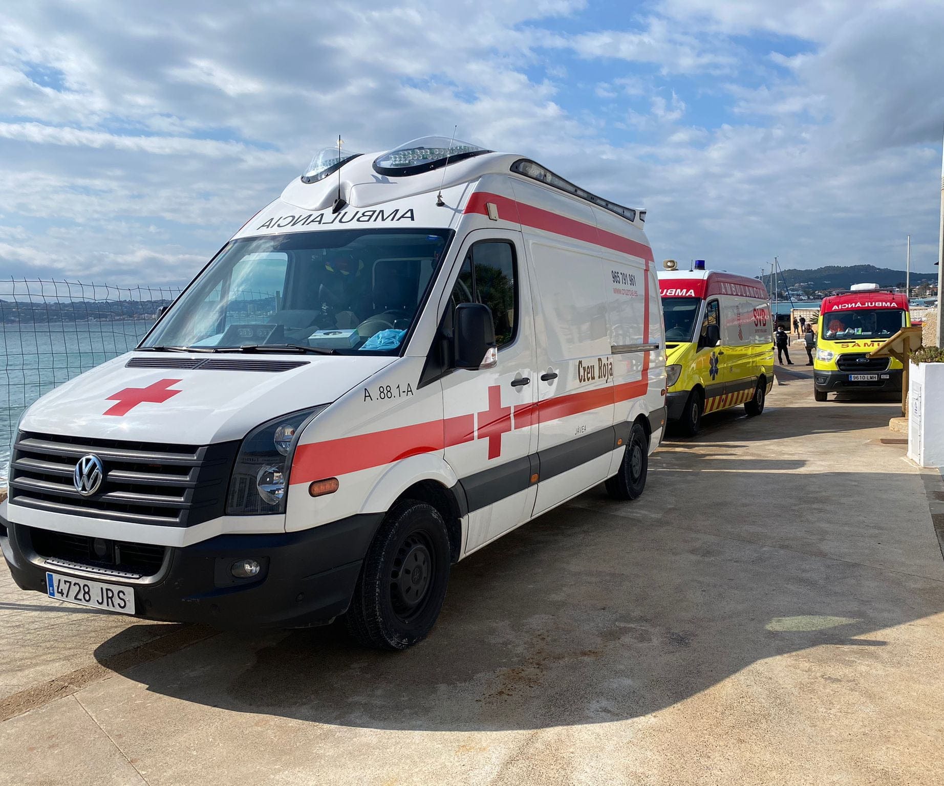 29 de septiembre de 2021 - 08:33 1 de 1Ver el artículo original: Un bañista pierde la vida en la playa del Arenal Vehículos de emergencias