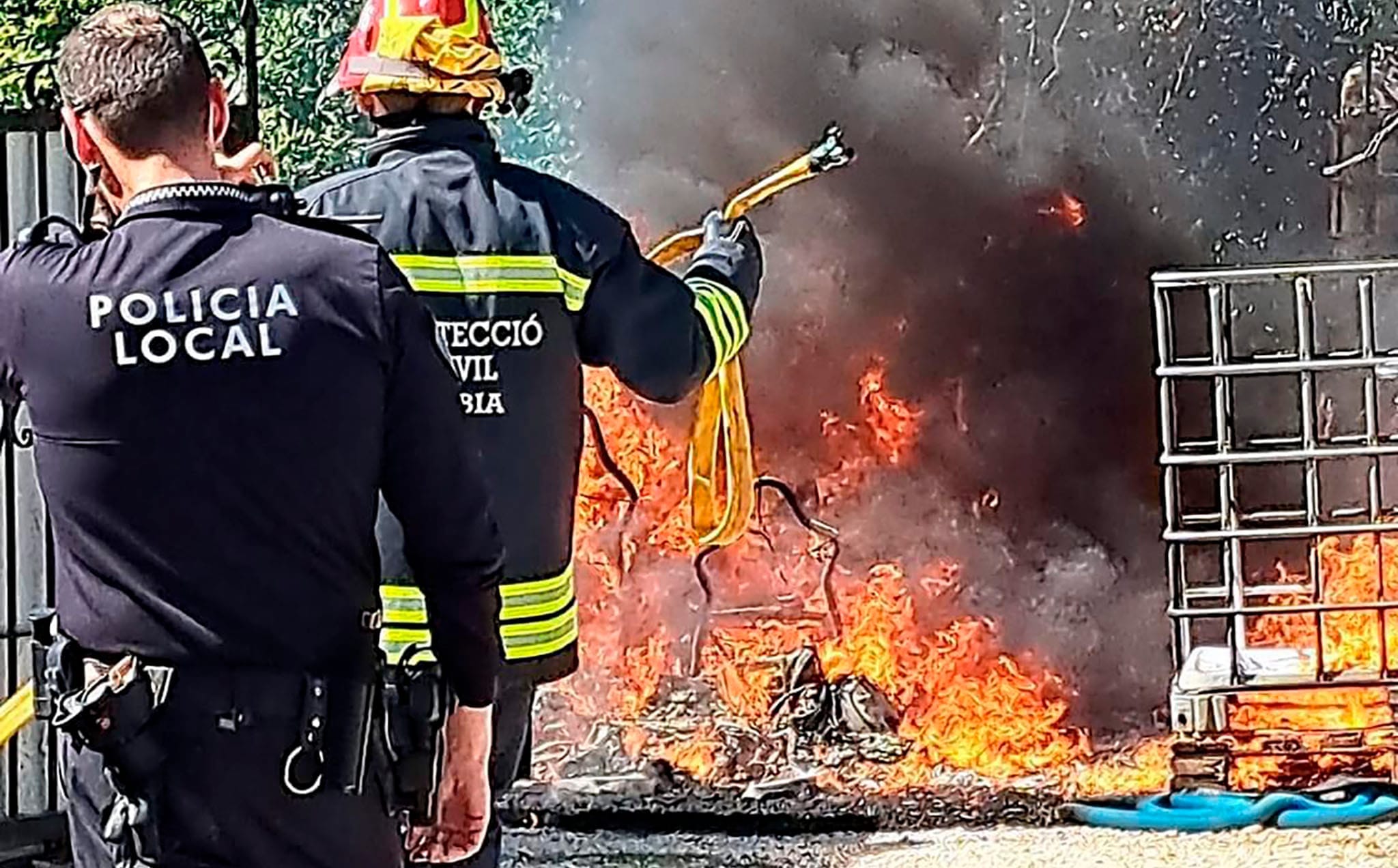26 de marzo de 2023 - 14:16 Foto Anterior3 de 4Foto SiguienteVer el artículo original: Un coche provoca un alarmante incendio en el barrio del Freginal de Xàbia Autoridades durante las labores de extinción – Protecció Civil Xàbia Bomberos extinguiendo el incedio – Protecció Civil Xàbia Las llamas entre el humo negro provocado por el incendio del coche – Protecció Civil Xàbia Las llamas entre el humo negro provocado por el incendio del vehículo – Protecció Civil Xàbia