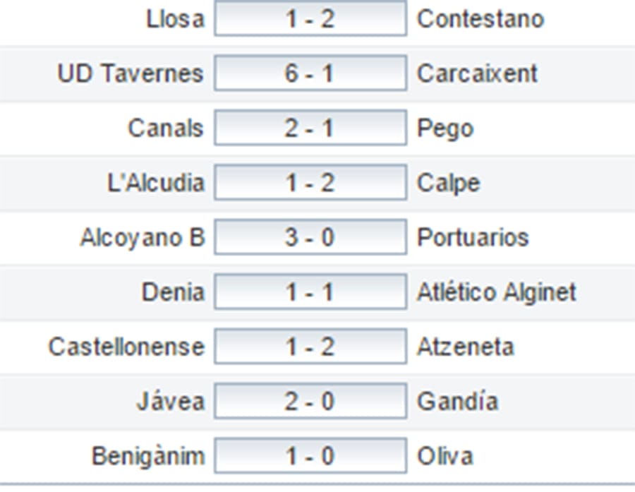26 de marzo de 2017 - 22:43Resultados Preferente Jornada 27. Foto Anterior4 de 5Foto SiguienteVer el artículo original: Un gran CD Jávea superó a una inoperante UE Gandía (2-0) Dino luchando con un rival Total dominio del CD Jávea Homenaje a Adrián Ortolá Resultados Preferente Jornada 27 Clasificación Jornada 27 Grupo Preferente