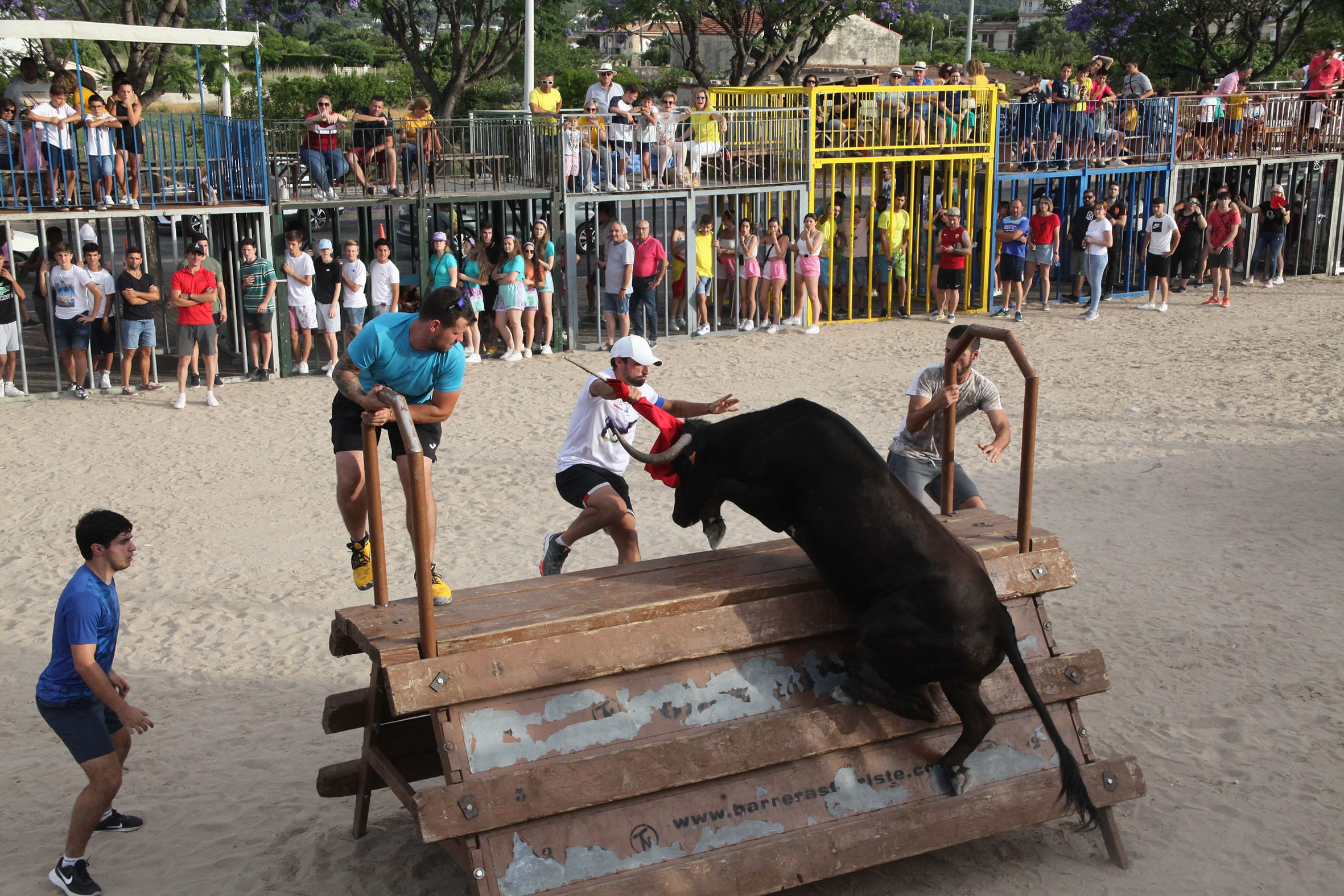 15 de junio de 2022 - 11:25 1 de 1Ver el artículo original: Un joven herido tras sufrir una fuerte cogida en la sesión de toros de Xàbia Primera sesión taurina de Fogueres Xàbia 2022