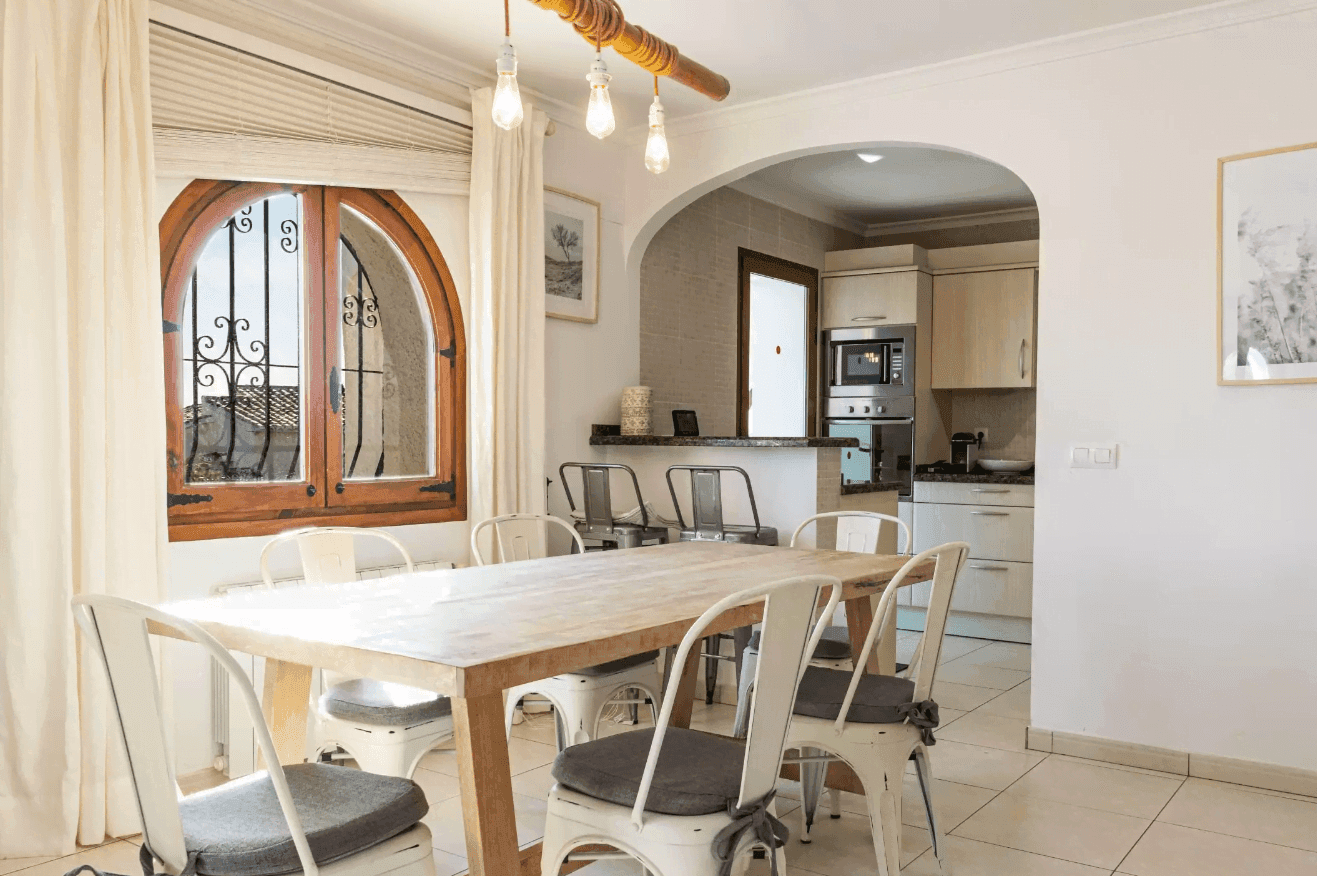 10 de enero de 2023 - 16:31La zona de comedor está equipada con una mesa de madera y sillas de estilo industrial Foto Anterior17 de 18Foto SiguienteVer el artículo original: Una villa de diseño con vistas al mar: enamórate de esta casa totalmente reformada en Jávea Baño equipado con plato de ducha Cocina de estilo americano con vitrocerámica Cocina de la villa completamente equipada Dormitorio con cama de matrimonio y aire acondicionado Dormitorio de la vivienda equipado con cama doble Dormitorio doble con dos camas individuales Preciosa villa con piscina en venta con vistas al mar Salón con dos sofás y mesa auxiliar de madera Salón de la villa, con chinenea y techo con bigas de madera Salón de la vivienda de estilo rústico – nórdico Solárium con vistas al mar Vista aérea de la vivineda con piscina Zona de barbacoa a una altura inferior con pérgola Zona de barbacoa exterior cubierta con una pérgola Zona de comedor con vistas panorámicas Zona de comedor de estilo rústico con sillas de metal Zona de comedor junto a la cocina de estilo americano La villa reformada en venta en Jávea