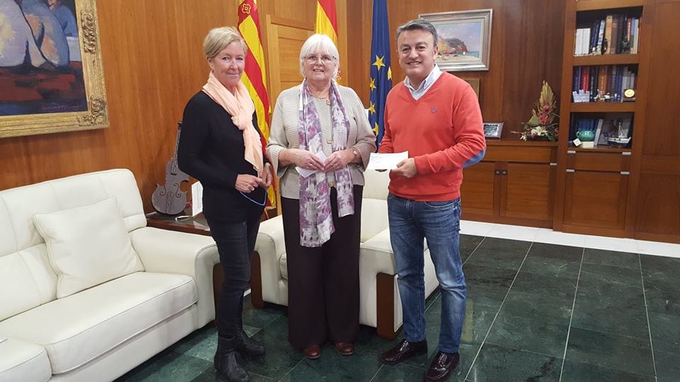 La comunidad de propietarios de la zona de Pinosol hizo entrega, la pasada semana, de un donativo de 3.000 euros. Esta aportación económica se llevó a cabo durante un acto con la concejala de Residentes Extranjeros, Doris Courcelles, y el alcalde de Xàbia, José Chulvi.
