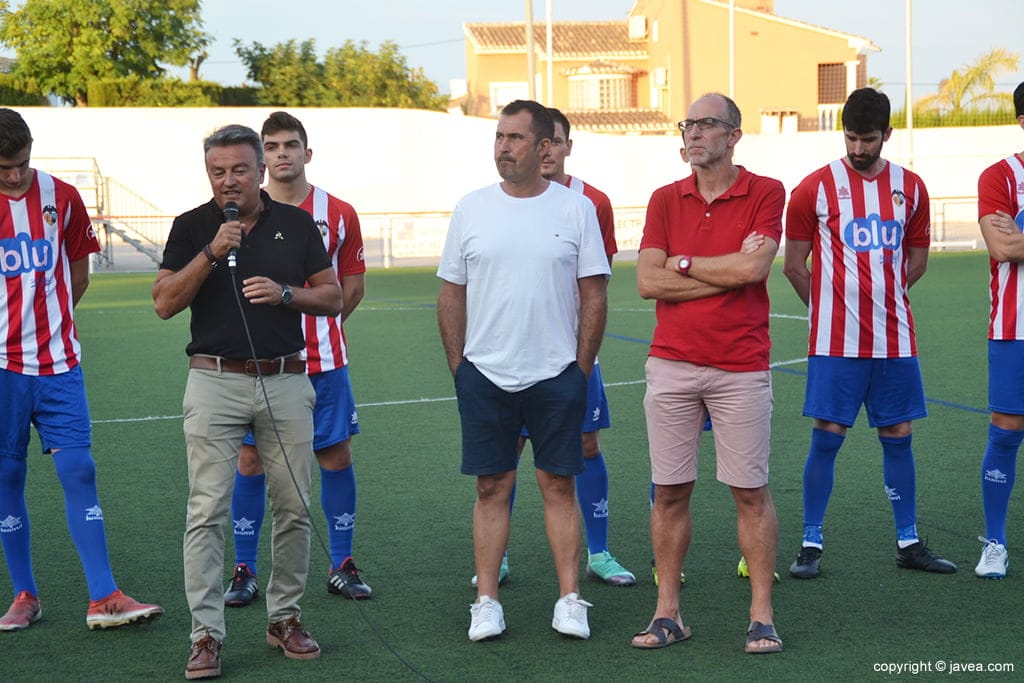 22 de agosto de 2018 - 00:27 Foto Anterior8 de 12Foto SiguienteVer el artículo original: Victoria del CD Jávea en su presentación ante La Nucía CF ‘B’ por 3 a 0 Palau felicitado por Faye tras el gol Saludos entre los jugadores Público en Tribuna Las caras nuevas del CD Jávea Chulvi hablando a los aficionados Canteranos junto a jugadores de la pasada campaña Cuerpo técnico del CD Jávea Tiscar y Colomer escuchando a Chulvi Aldo hablando al público El aficionado Pablito con sus amigos, Paco, Cristian y Ferrán Antonio Villaescusa en su discurso Plantilla CD Jávea 2018-19