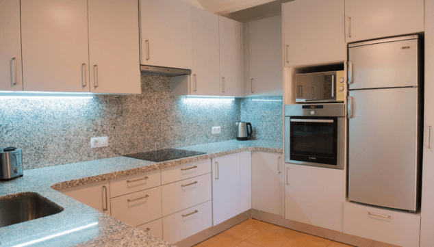 Además, para tus desayunos y meriendas, tendrás una cafetera, hervidor eléctrico, tostadora, batidora y exprimidor. Todo lo necesario para disfrutar de una cocina completa.