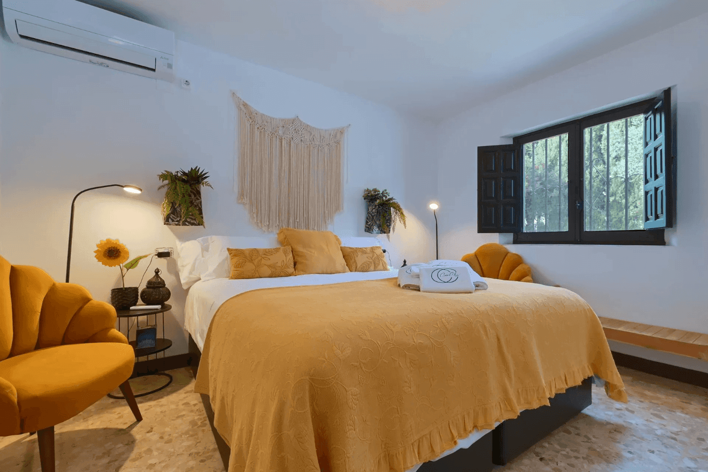 24 de mayo de 2023 - 13:25Este dormitorio cuenta con una cama doble, aire acondicionado y sillón Foto Anterior2 de 16Foto SiguienteVer el artículo original: Villa Casa Coline: la preciosa vivienda de vacaciones en Jávea que te transportará a Santorini Dormitorio con cama doble, armarios empotrados y aire acondicionado Dormitorio de la villa con cama doble y aire acondicionado Dormitorio de la vivienda con vistas al exterior y cama doble El exterior de la vivienda te cautivará El salón-comedor de la vivienda es una mezcla entre estilo industrial y rústico Elegante baño en tonos negros con plato de ducha y mampara de cristal La cocina de exterior será ideal para tus comidas y cenas en verano La preciosa villa ubicada bajo el Montgó Piscina privada de la vivienda rodeada por zonas de terraza Solarium de la vivienda con impresionantes vistas Terraza de la villa con vistas al Montgó Un lugar ideal para tus comidas y cenas al aire libre Un salón-comedor con aire acondicionado y salida directa a la terraza Una villa de ensueño perfecta para la desconexión Zona de cocina al aire libre con barbacoa de exterior Una preciosa villa vacacional en Jávea
