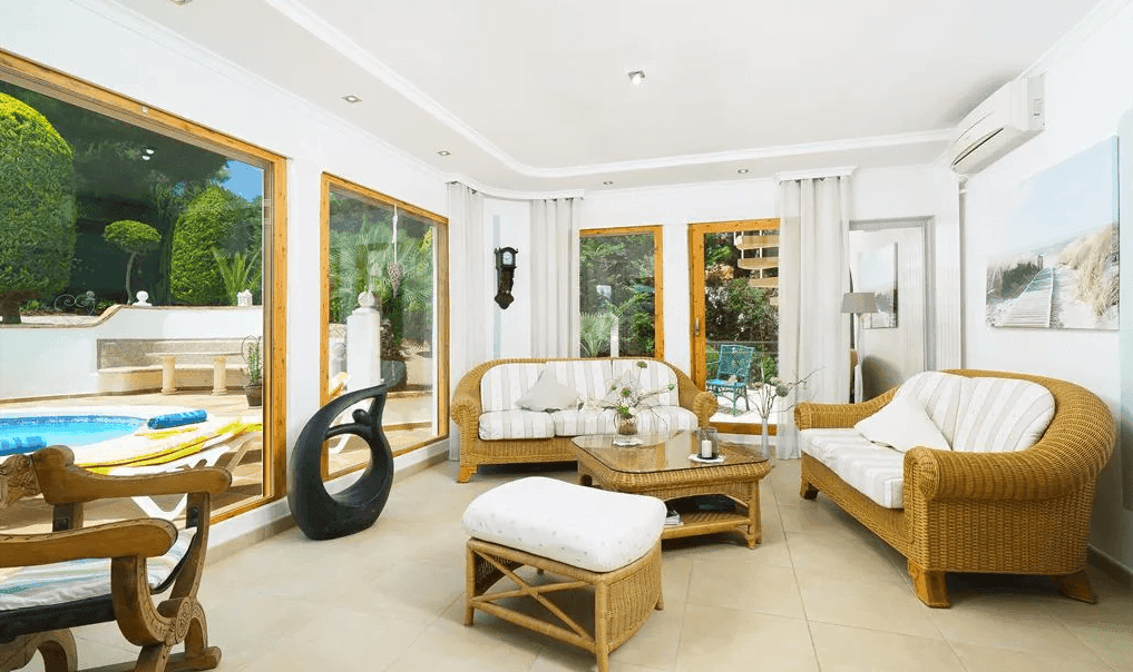 18 de noviembre de 2022 - 11:56El salóne stá equipado con dos sofás, un sillón y una mesa auxiliar Foto Anterior12 de 18Foto SiguienteVer el artículo original: Villa Puravida: alójate en el paraíso sin moverte de Jávea con esta villa perfecta para 6 personas Baño de la vivienda equipado con ducha Baño moderno con plato de ducha y mampara de cristal Cocina exterior de la villa con barbacoa Cocina totalmente equipada Comedor exterior en la terraza cubierta de la villa Dormitorio con cama doble Dormitorio con una gran cama de matrimonio y baño en suite Fachada de la vivienda con piscina Lavabo moderno ovalado con banco en madera Salón adicional de la villa Salón de estilo rústico con salida a la terraza Salón equipado con aire acondicionado y mucha luz Vivienda de dos plantas con piscina en Jávea Zona chill out junto a la piscina de la vivienda Zona de cocina exterior acristalada Zona de comedor junto a la cocina Zona de terraza en el exterior de la vivienda Villa Puravida – Villa de lujo vacacional en Jávea