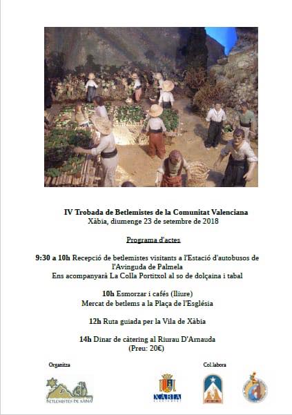 Con motivo de esta fiesta, las Asociaciones Belenistas trabajan durante todo el año para sus nuevas creaciones y entre ellas, han formado un Encuentro de convivencia en el que las Asociaciones Belenistas de la Comunidad Valenciana se unen e intercambian y compartir experiencias. En esta ocasión, el Encuentro de este 2018, que cumple su cuarta edición, tendrá lugar en Xàbia este domingo 23 de octubre.
