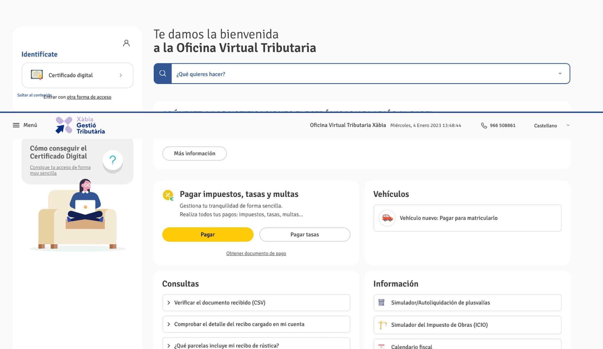 04 de enero de 2023 - 14:33 1 de 1Ver el artículo original: Xàbia aprueba la eliminación del cobro de la tasa por la basura con el nuevo calendario fiscal Web de la Oficina Virtual Tributaria