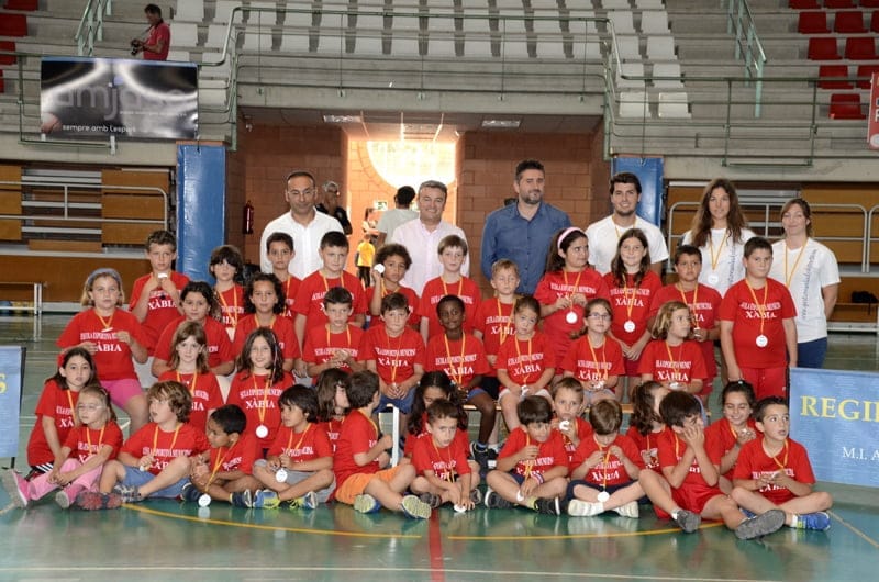 Es una de las escuelas más numerosa. Aquí se les puede ver junto al alcalde, José Chulvi y al edil de deportes, Juan Luis Cardona.
