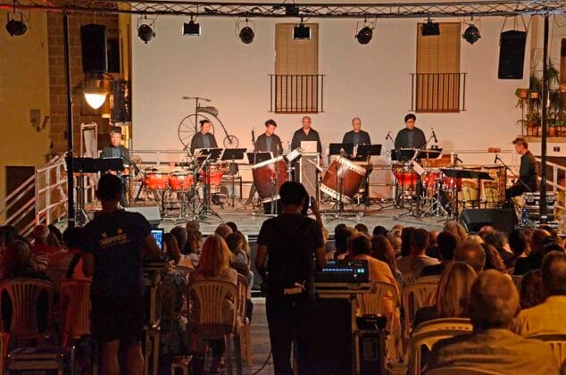 Respecto al encuentro de percusión, cada noche hay conciertos gratuitos en distintos espacios de todo el municipio. Además, en el Conservatorio conviven esta semana los percusionistas con soundpainters llegados de Bilbao, Barcelona, Valencia, París, Nueva York, Berlín, Bélgica, Bulgaria o Francia. El concierto de este disciplina será el viernes 13 de julio, en la plaza Maruja Varó a las 20 horas.