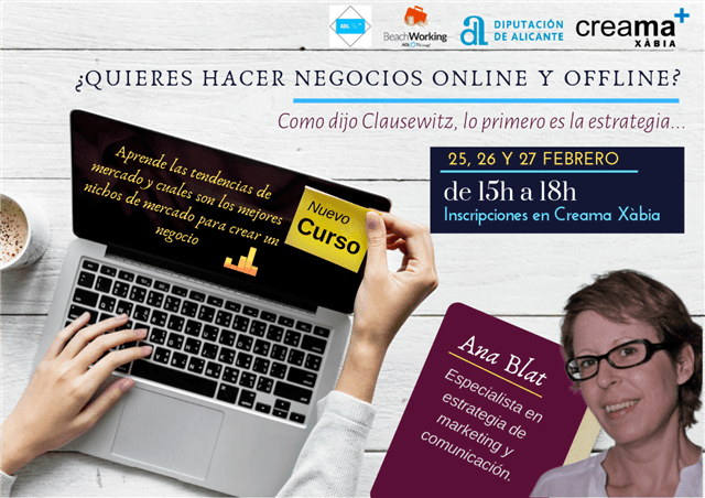 El curso tiene 20 plazas, que se adjudicarán a los primeros en inscribirse bien llamando por teléfono al Creama Xàbia, 96 579 36 04 o en el siguiente enlace: https://gestionandote.com/Tipo_Formacion/-quieres-hacer-negocios-online-y-offline- como-dijo-clausewitz-lo-primero-es-la-estrategia/13425