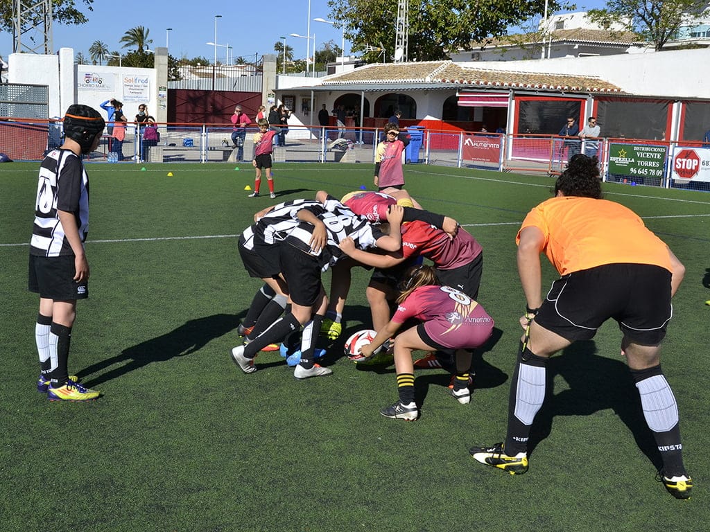 03 de abril de 2017 - 22:08Introducción del balón en una melé Foto Anterior8 de 10Foto SiguienteVer el artículo original: Xàbia se estrenó, con éxito, como anfitrión de la Jornada provincial de escuelas de Rugby Saludo entre jugadores de los dos equipos El entrenador Daniel Wolff del equipo Sub 10 Equipo Sub 8 el Xàbia Club Rugby Bonita lucha por el balón Corriendo con el balón Pasillo entre ambos equipos Bonito placaje a un jugador xabiero Introducción del balón en una melé Pentración de un jugador del Xàbia Los entrenadores Xavi y Fran del equipo Sub 8