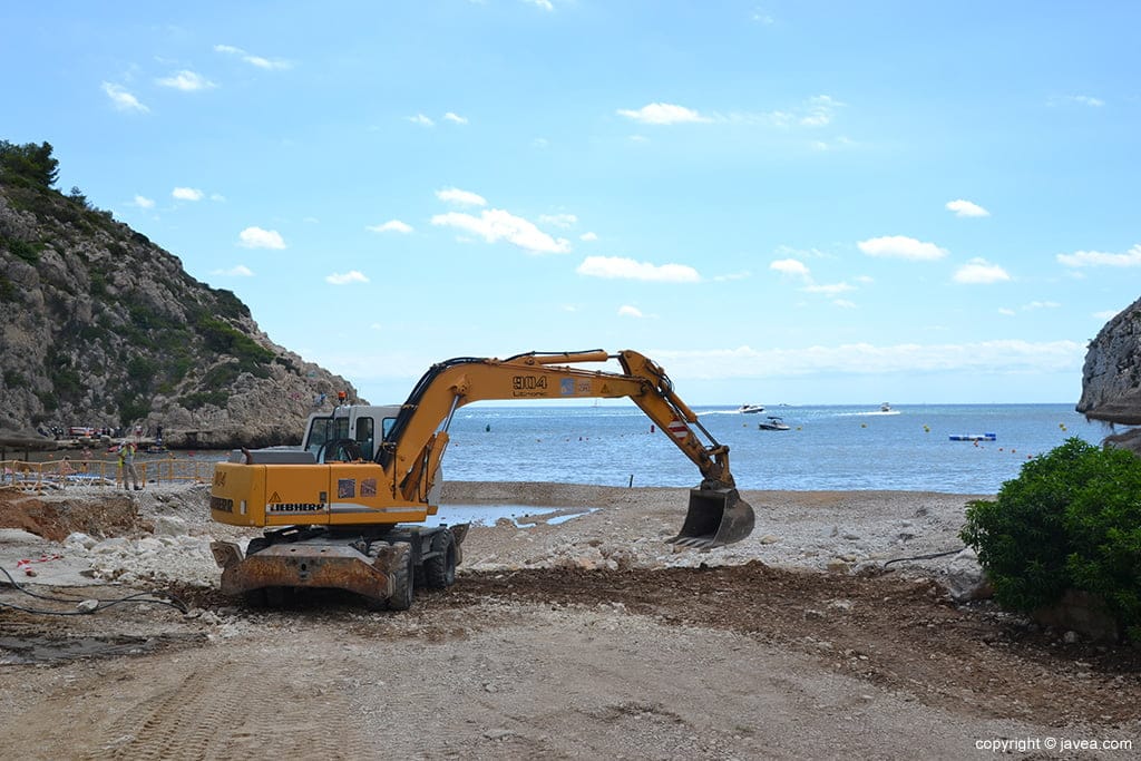 Varias máquinas trabajan para devolver el estado original de la cala cuanto antes